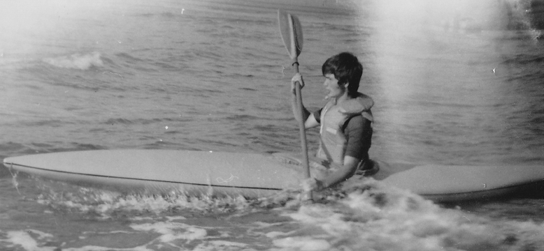 Laszlo Lipot at 16 years of age kayaking off the coast of west Wales. That light bright green kayak was my first big project.