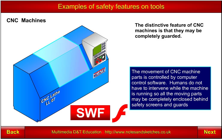 Design and technology hand tools and machine tools are designed to cut, to abrade, to polish, to heat etc, so have parts that pose a risk to students' health and safety. The moving parts of machine tools are wherever practicable shielded by guards, some of which incorporate micro switches that switch the machine off when the guard is opened or removed. However some moving parts of machinery are exposed out of necessity, so the operator must be competent to use the machine, must be strong enough to control the machine and must wear the recommended personal protective equipment (PPE) such as goggles.